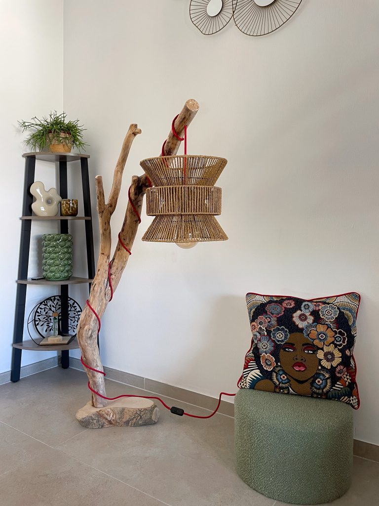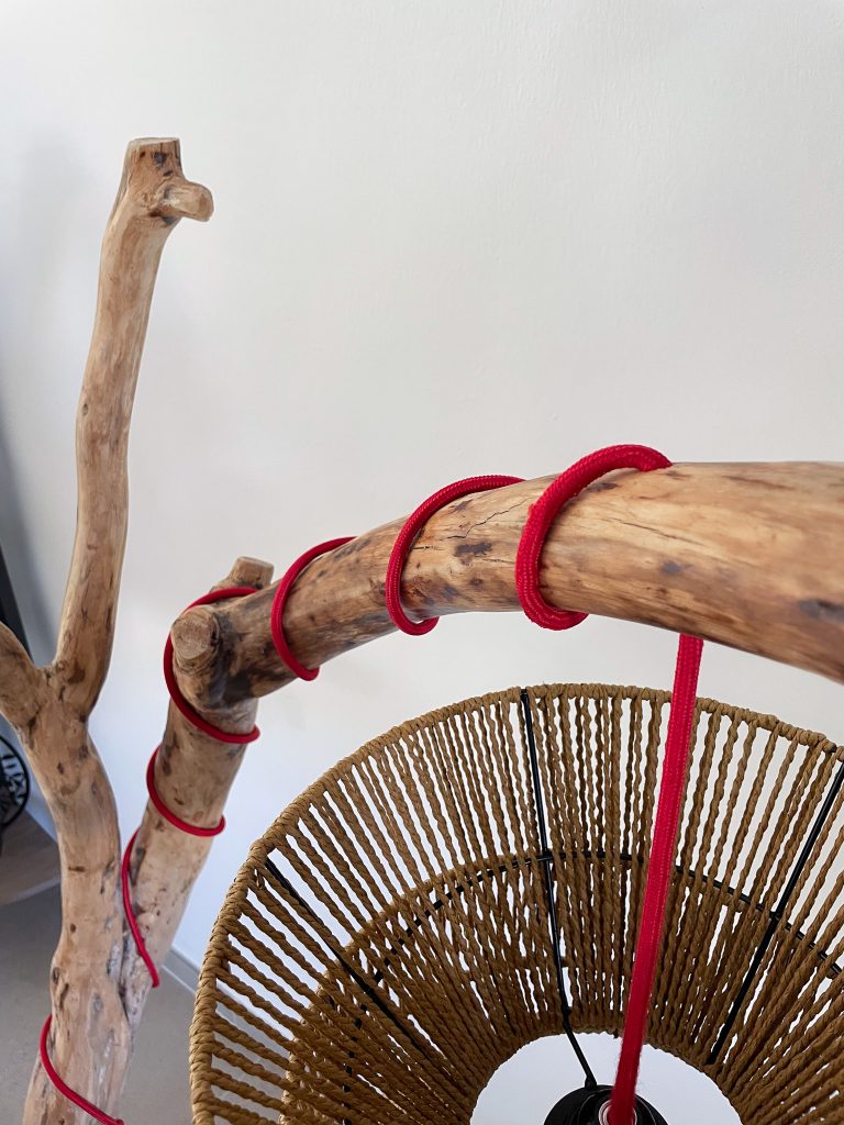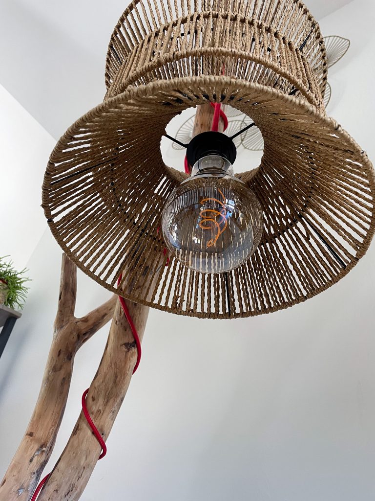 L’impératrice Lampe design en bois et rotin – pièce unique